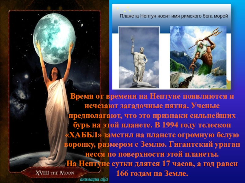 Слайд 3Время от времени на Нептуне появляются и исчезают загадочные пятна. Ученые