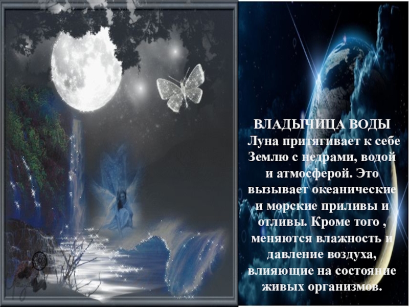 ВЛАДЫЧИЦА ВОДЫ Луна притягивает к себе Землю с недрами, водой и атмосферой. Это вызывает океанические и морские