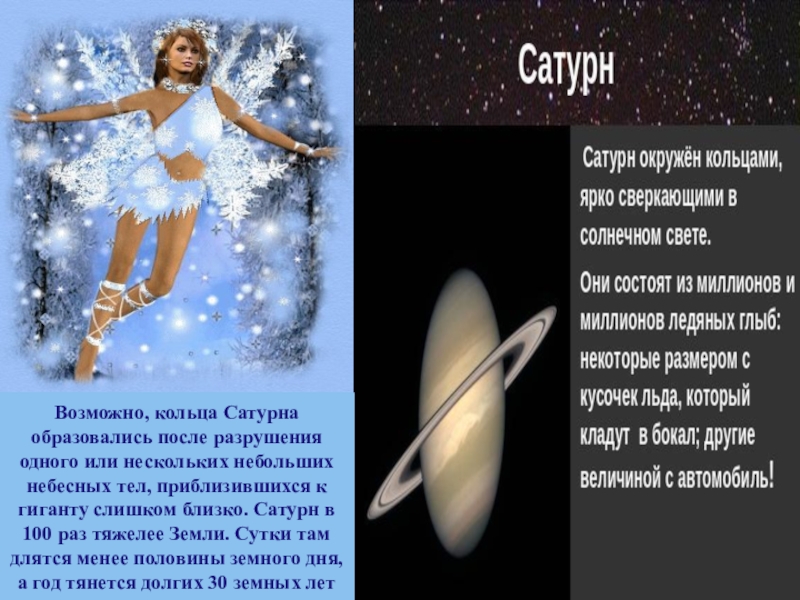 Слайд 9Возможно, кольца Сатурна образовались после разрушения одного или нескольких небольших небесных