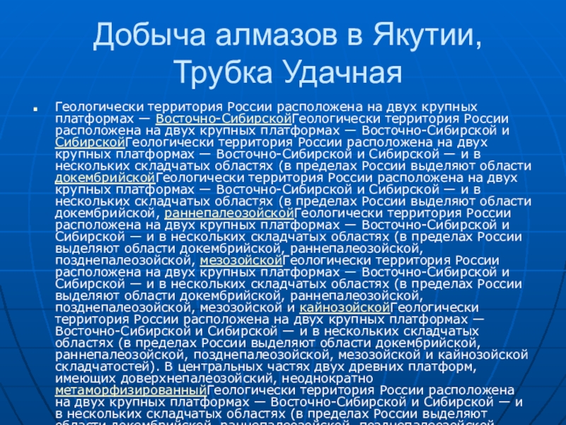 Слайд 25Добыча алмазов в Якутии, Трубка Удачная