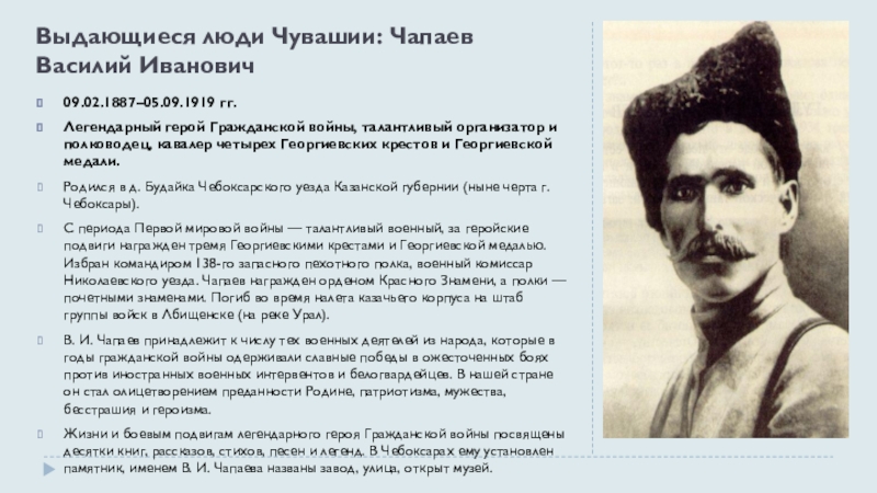Слайд 6Выдающиеся люди Чувашии: Чапаев Василий Иванович