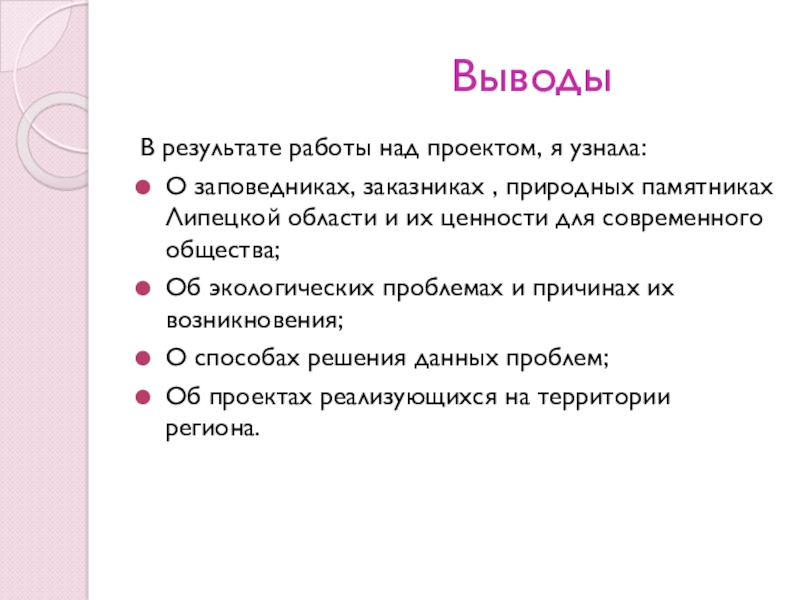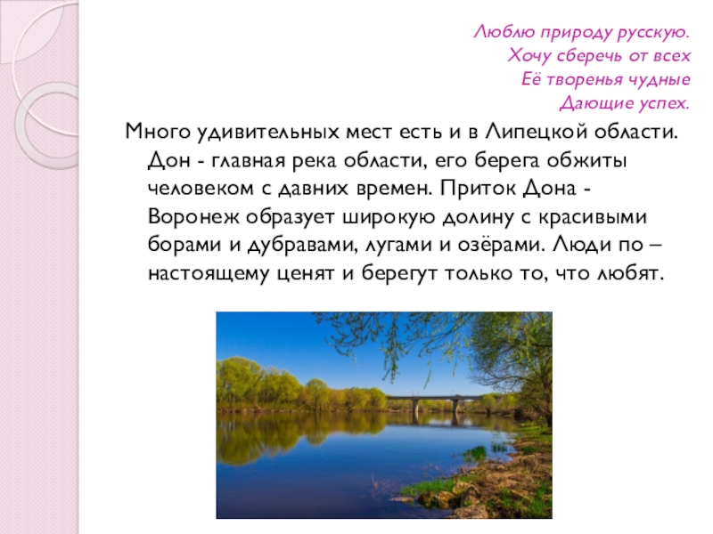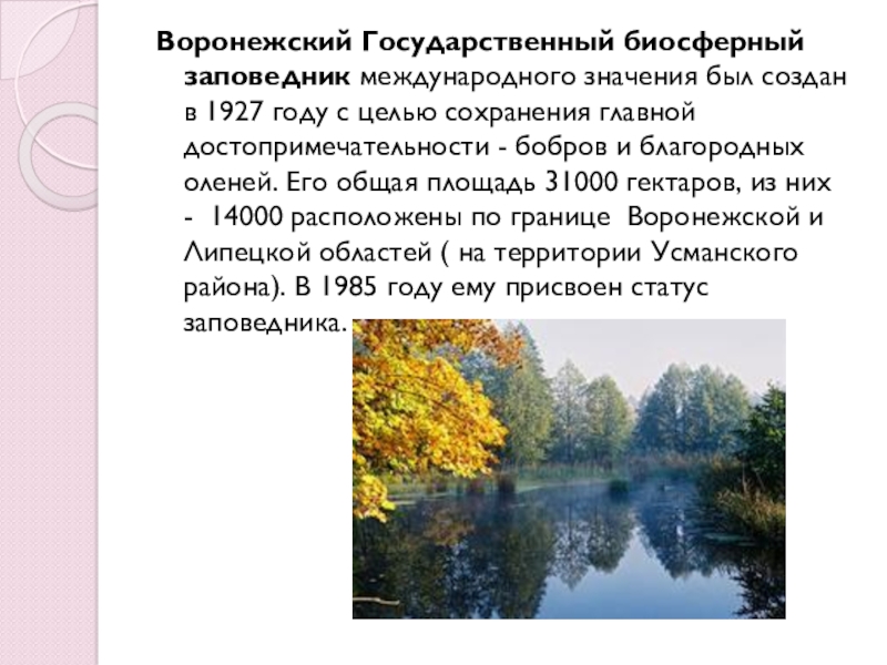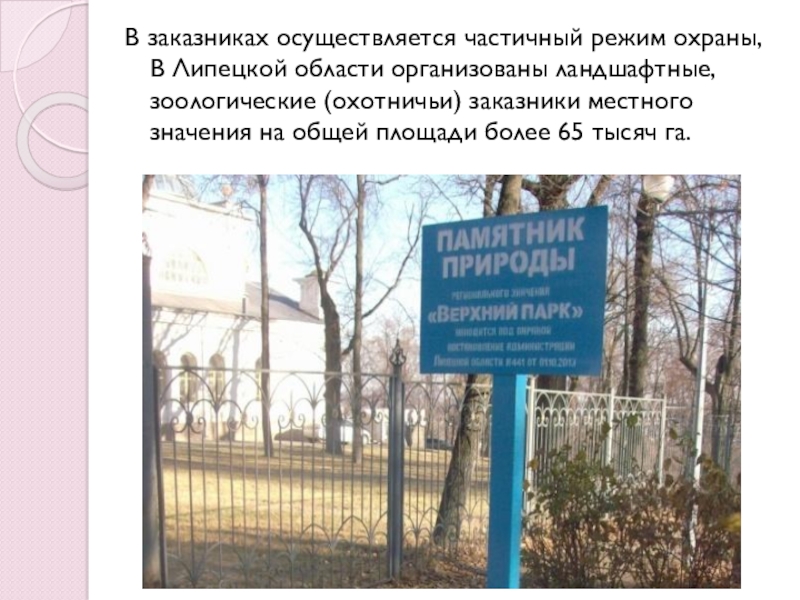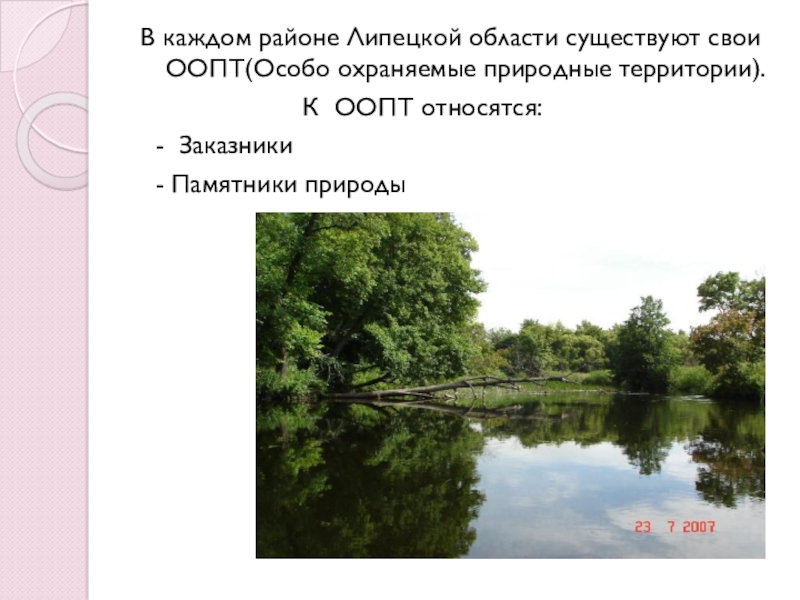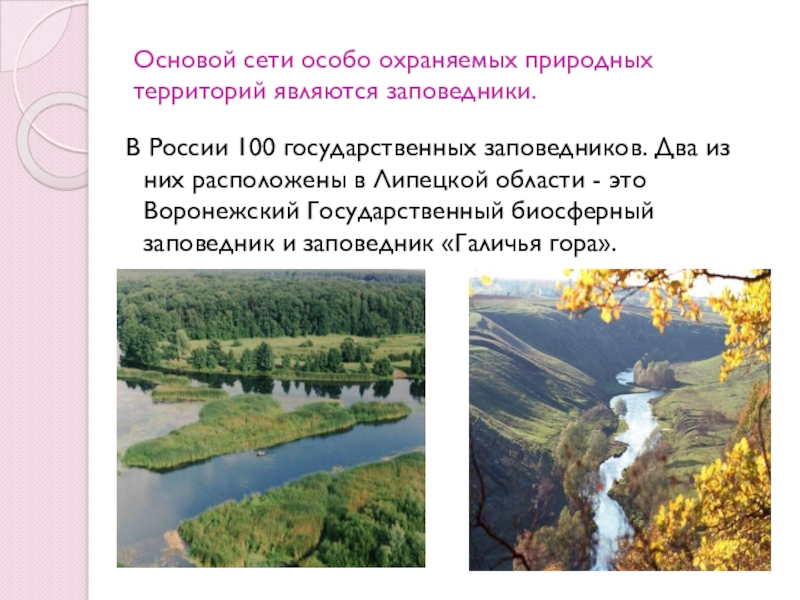 О заповедниках, заказниках , природных памятниках Липецкой области и их ценности для современного общества;
