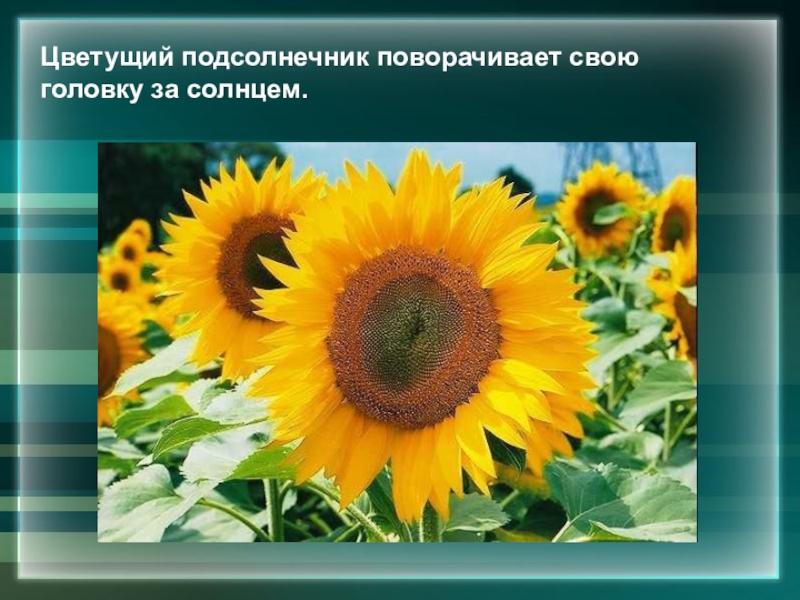Слайд 25Цветущий подсолнечник поворачивает свою