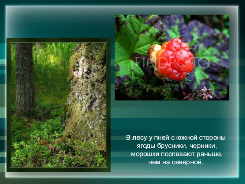 Слайд 6На открытой лесной поляне ягоды раньше созревают с юга.