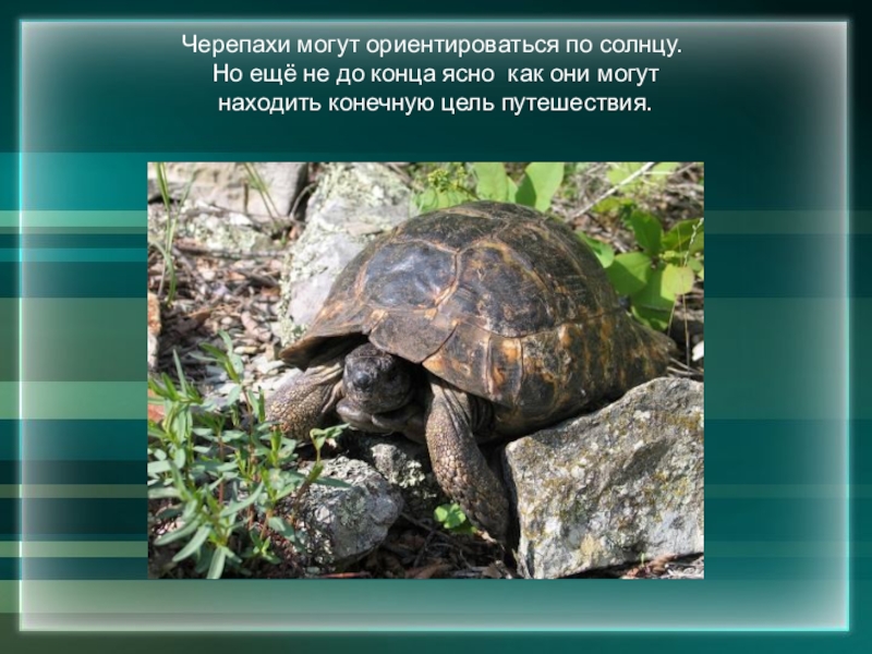 Слайд 15Черепахи могут ориентироваться по солнцу.
