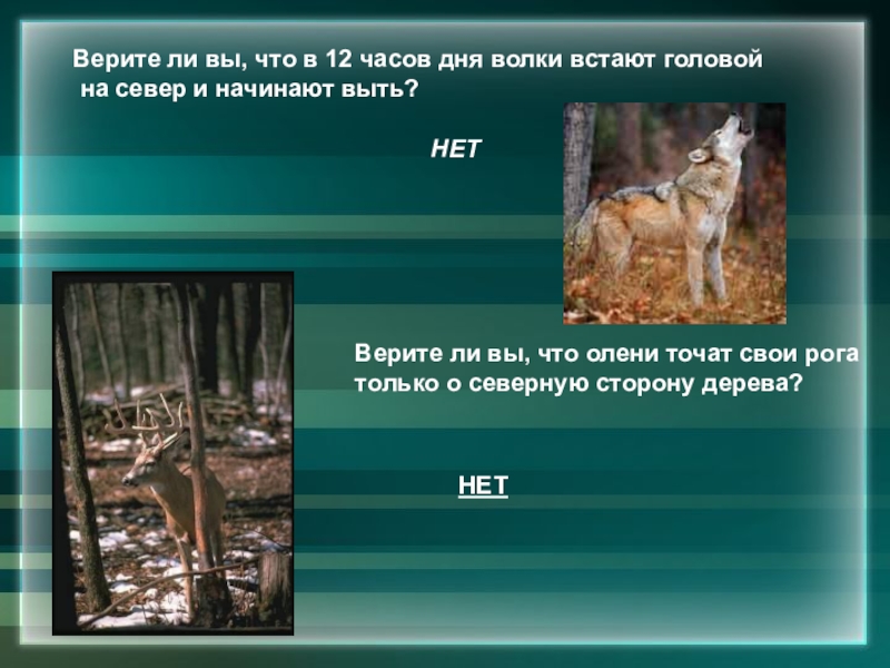 Слайд 31Верите ли вы, что в 12 часов дня волки встают головой