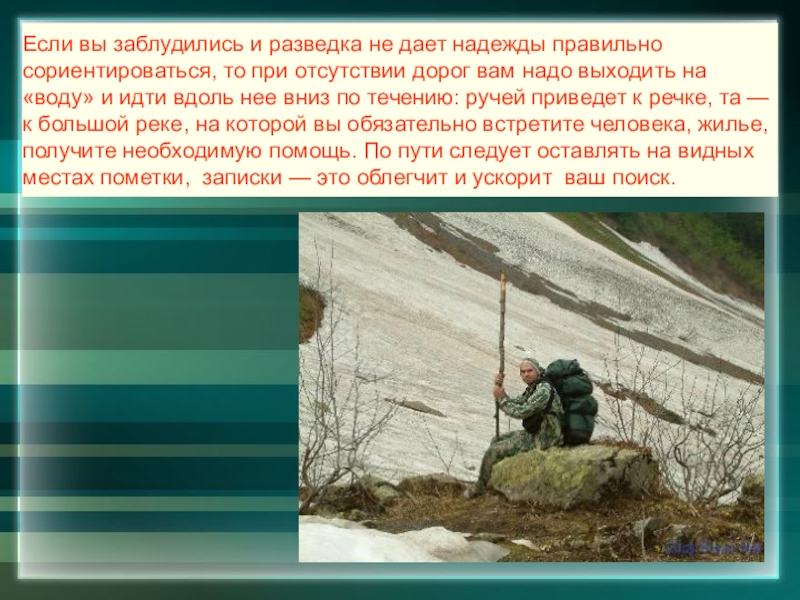 Слайд 29Если вы заблудились и разведка не дает надежды правильно сориентироваться, то