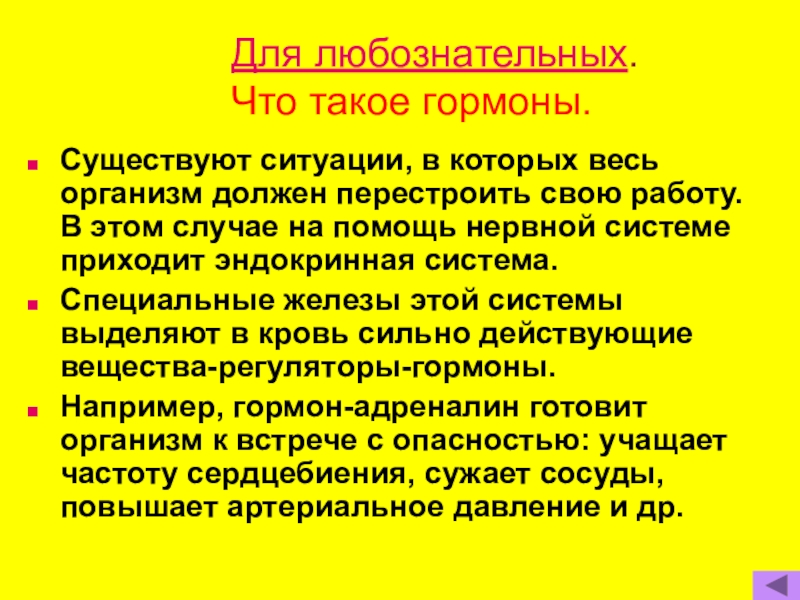 Слайд 8Для любознательных. Что такое гормоны.