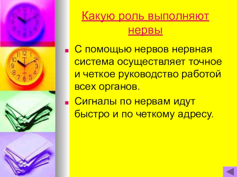 Какую роль выполняют нервыС помощью нервов нервная система осуществляет точное и четкое руководство работой всех органов.Сигналы по