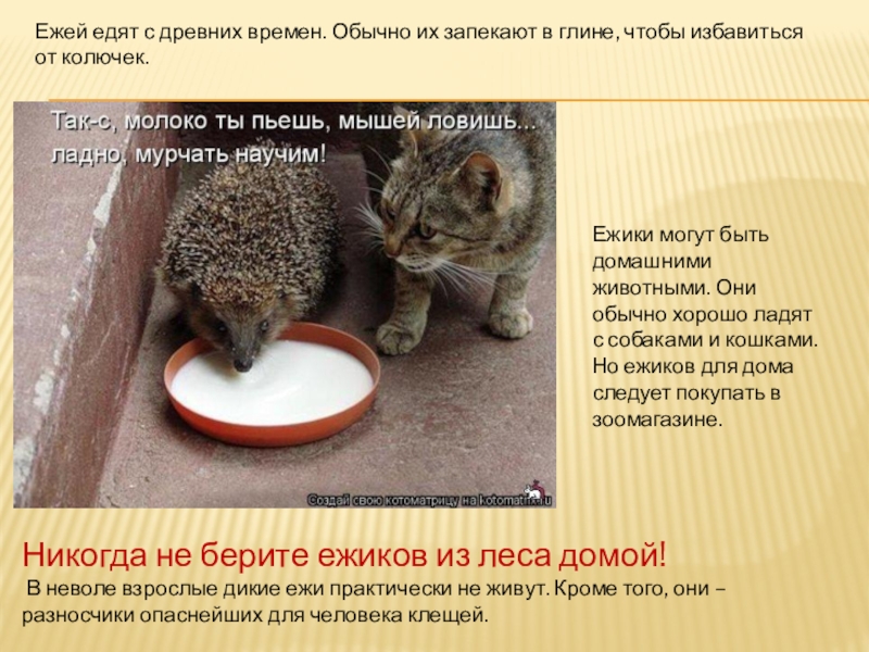 В неволе взрослые дикие ежи практически не живут. Кроме того, они – разносчики опаснейших для человека клещей.
