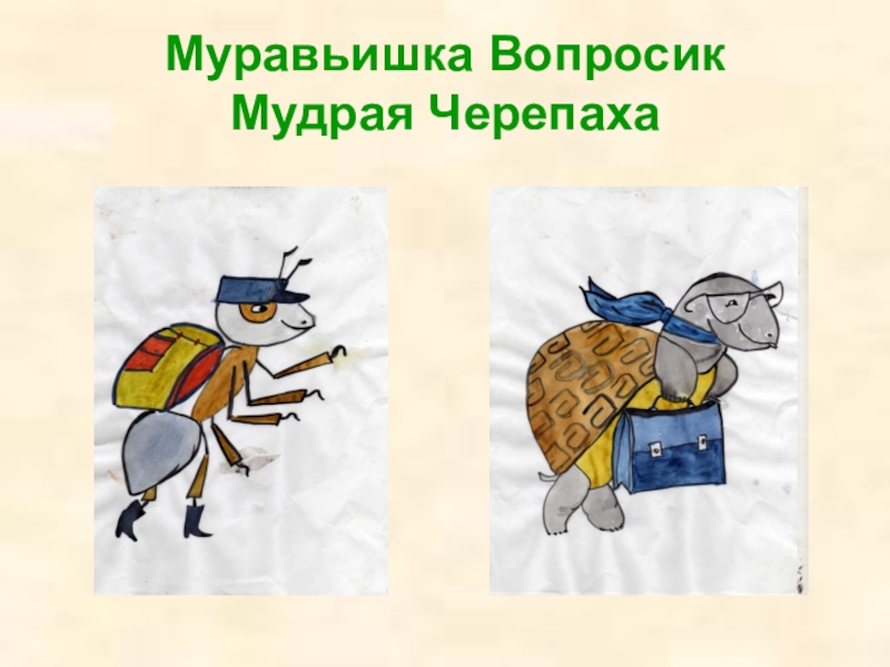Слайд 3Муравьишка Вопросик Мудрая Черепаха