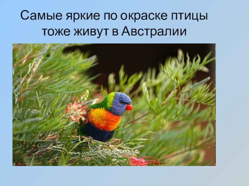 Слайд 20Самые яркие по окраске птицы тоже живут в Австралии