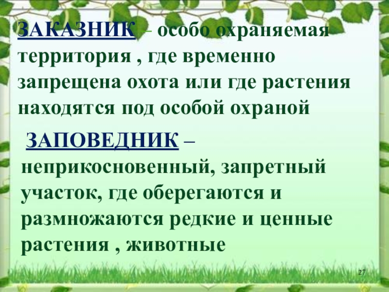 ЗАПОВЕДНИК – неприкосновенный, запретный участок, где оберегаются и размножаются редкие и ценные растения , животные