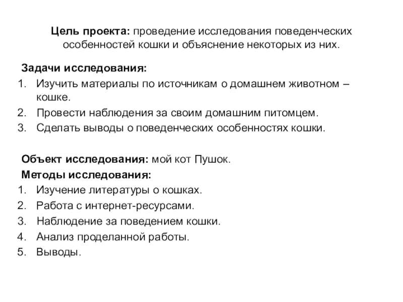 Объект исследования: мой кот Пушок.