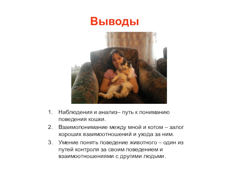 Сделать выводы о поведенческих особенностях кошки.