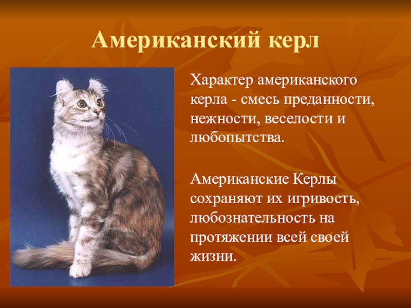 Американские Керлы сохраняют их игривость, любознательность на протяжении всей своей жизни.