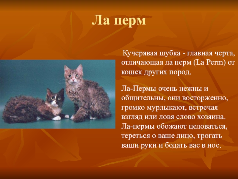 Кучерявая шубка - главная черта, отличающая ла перм (La Perm) от кошек других пород.