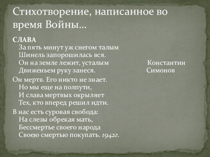 Стихотворение, написанное во время Войны…