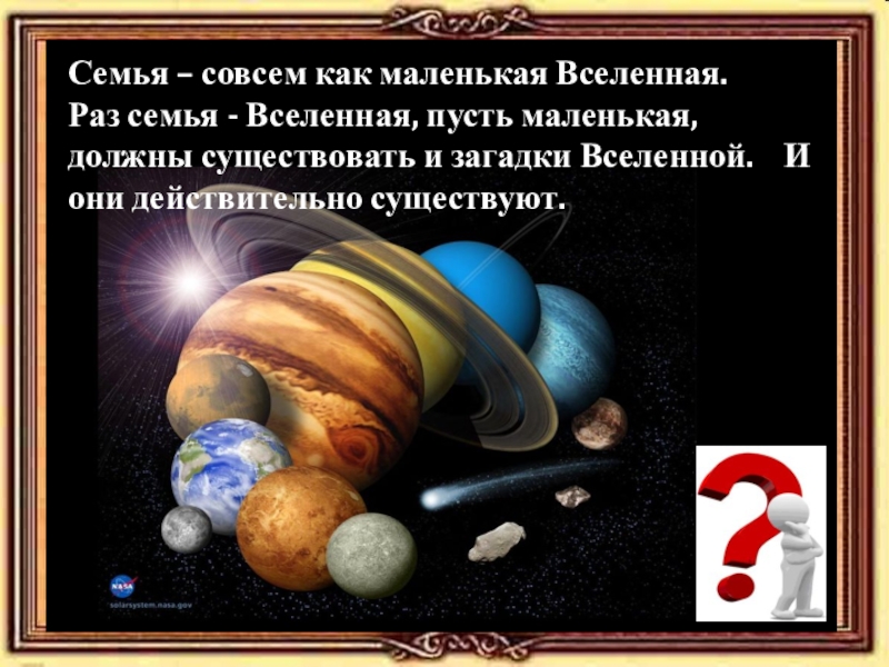 Слайд 7Семья – совсем как маленькая Вселенная.