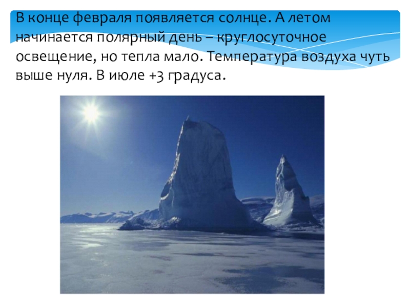 Солнце здесь никогда не поднимается высоко над горизонтом. Солнечные лучи только скользят по поверхности и поэтому дают совсем мало тепла.