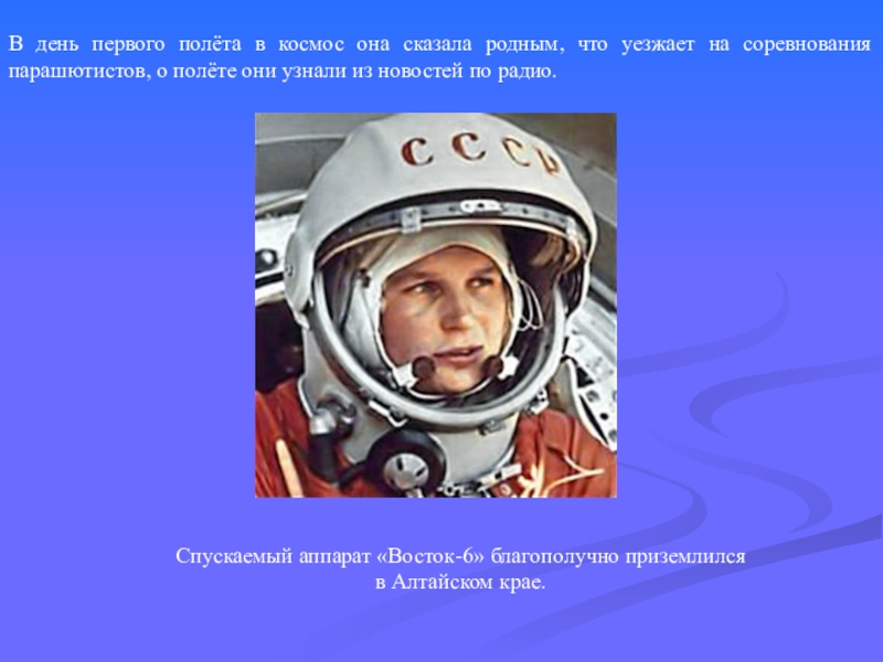 Спускаемый аппарат «Восток-6» благополучно приземлился