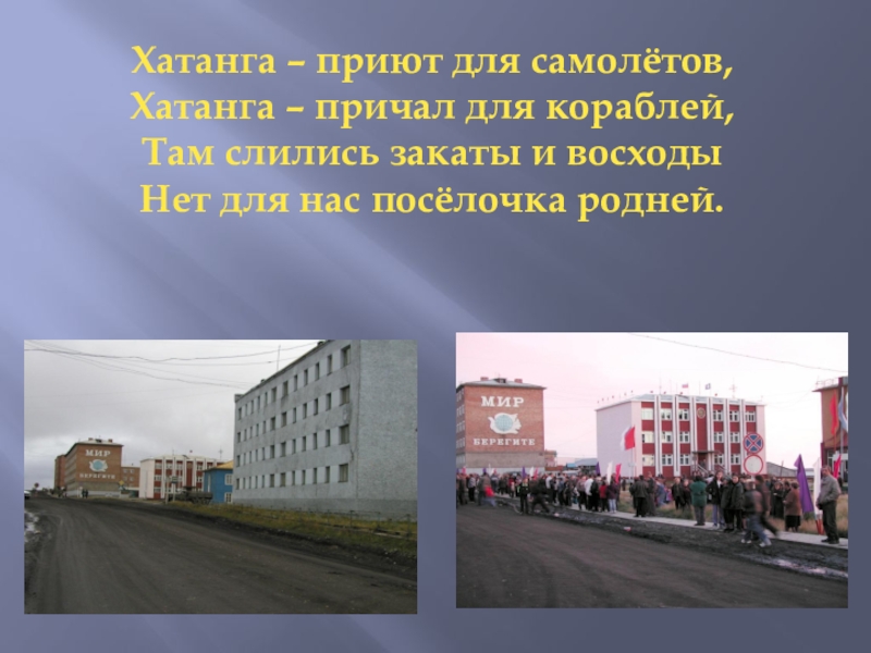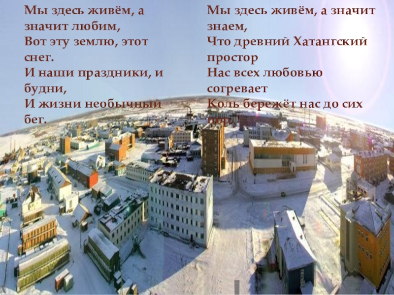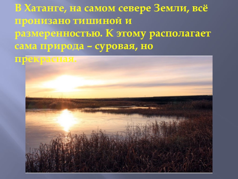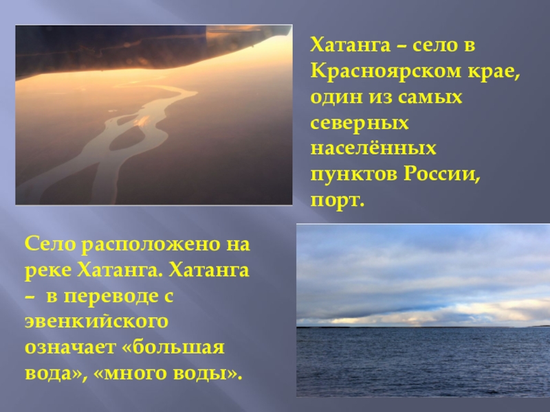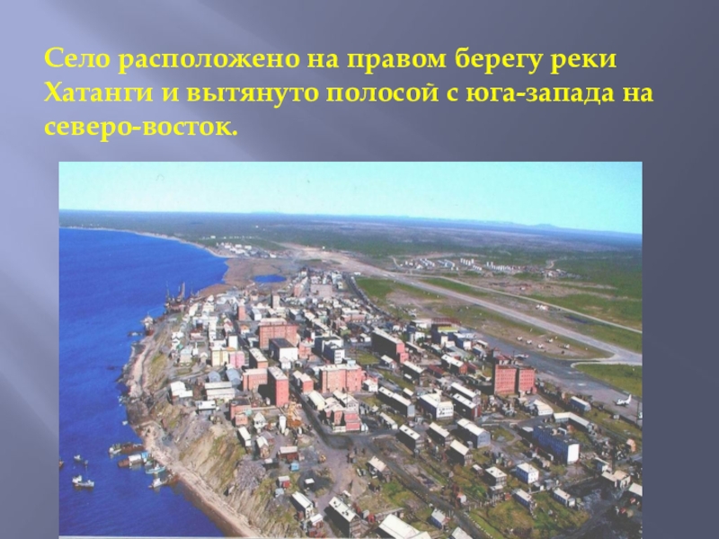 Село расположено на реке Хатанга. Хатанга – в переводе с эвенкийского означает «большая вода», «много воды».