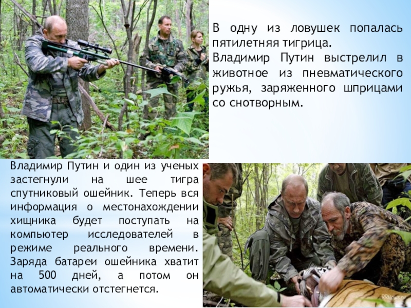 Владимир Путин выстрелил в животное из пневматического ружья, заряженного шприцами со снотворным.