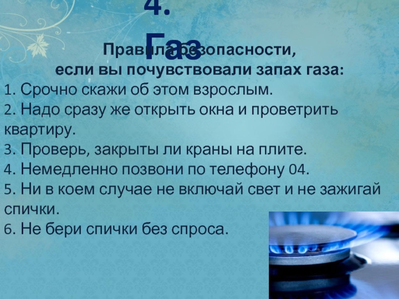 5. Ни в коем случае не включай свет и не зажигай спички.