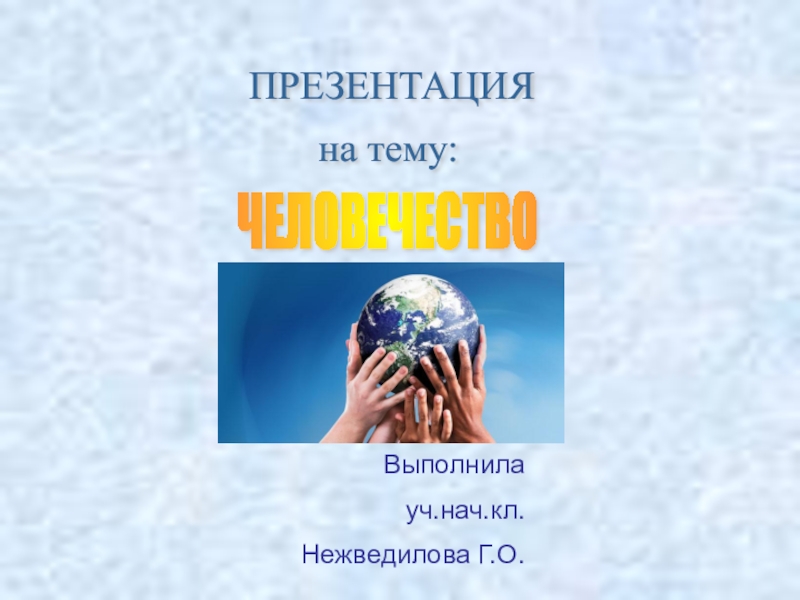 ПРЕЗЕНТАЦИЯ на тему: ЧЕЛОВЕЧЕСТВО Выполнила уч.нач.кл.Нежведилова Г.О.