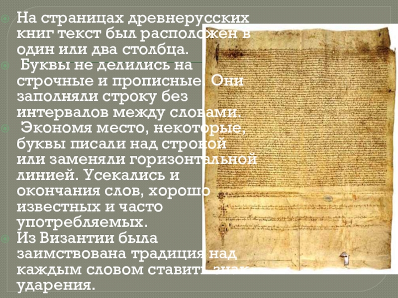 Слайд 6На страницах древнерусских книг текст был расположен в один или два