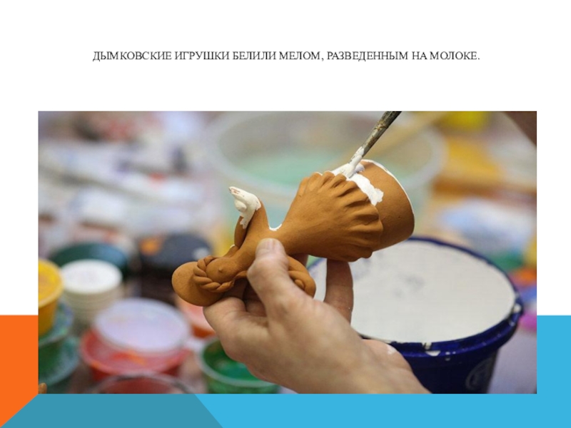 Слайд 12Дымковские игрушки белили мелом, разведенным на молоке.