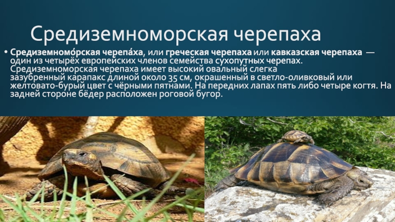 Средиземномо́рская черепа́ха, или греческая черепаха или кавказская черепаха — один из четырёх европейских