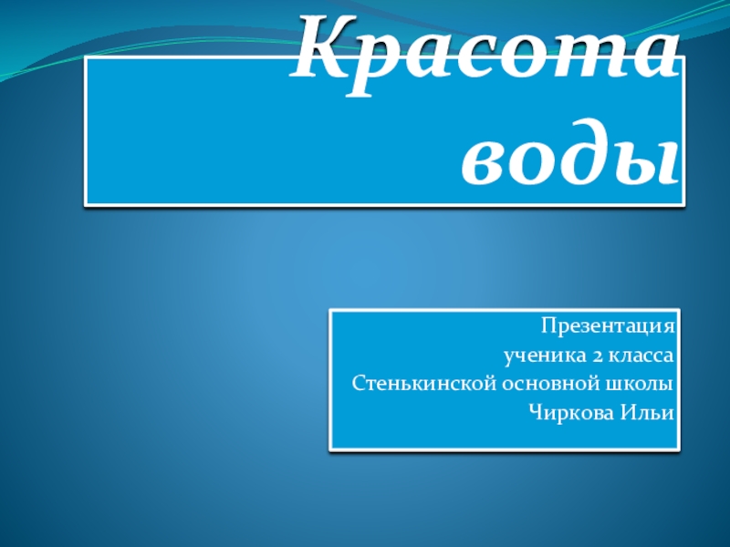 Красота водыПрезентация ученика 2 классаСтенькинской основной школы Чиркова Ильи