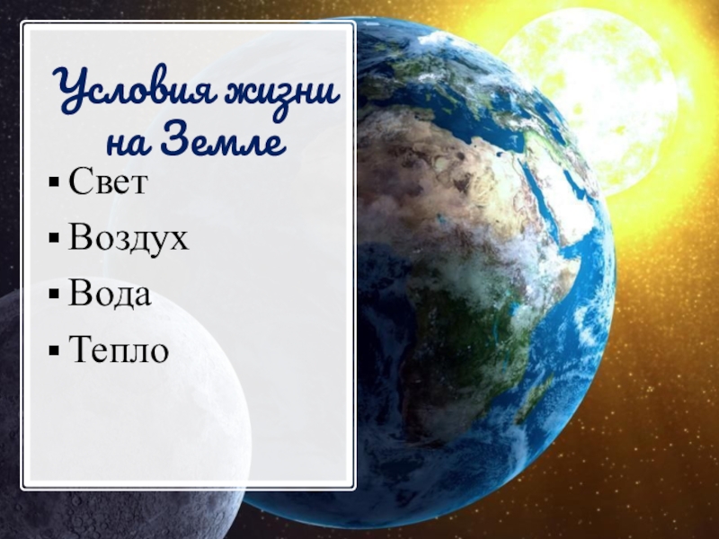 Условия жизни на ЗемлеСветВоздухВодаТепло