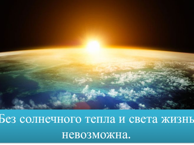 Слайд 5Без солнечного тепла и света жизнь невозможна.