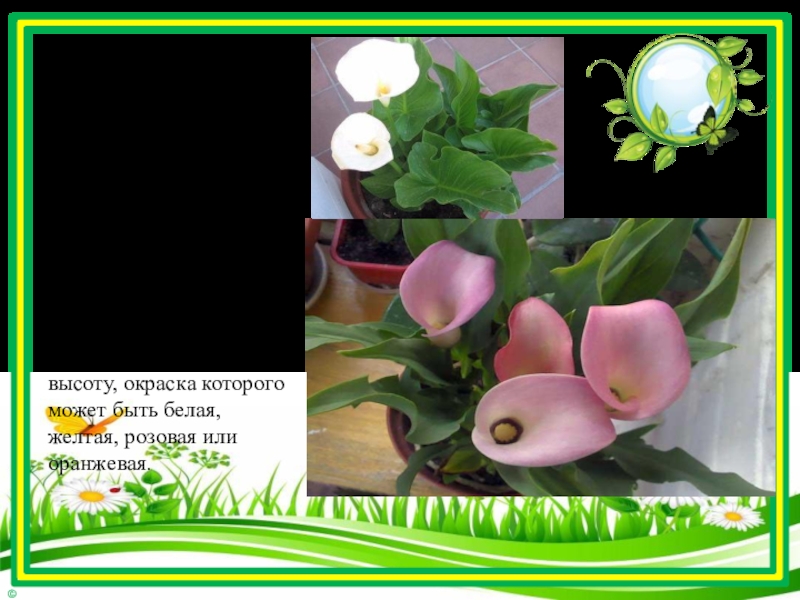 Произрастает в тропической Африке. Листья у калл - сочно-зеленые на крепких