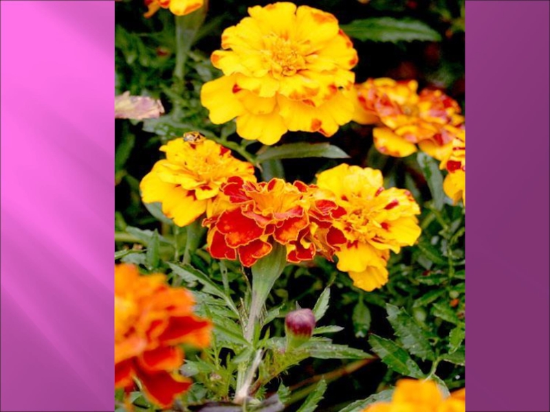 БархатцыМноголетние растенияНазваны в честь внука бога Юпитера Тагеса, бога предсказателя будущего и красотыПроисходят из Южной Америки