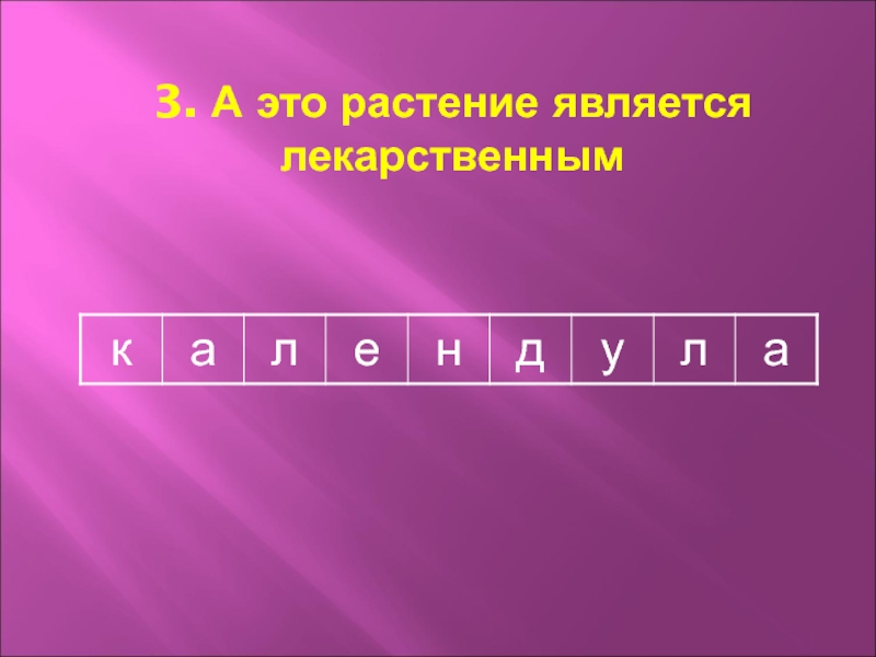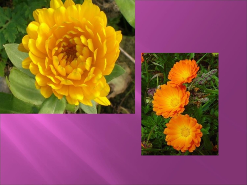 КалендулаЛекарственное растениеОтваром цветов календулы полощут горло, обмывают раныКалендулу используют при изготовлении кремов, шампуней, мылаВторое название календулы –