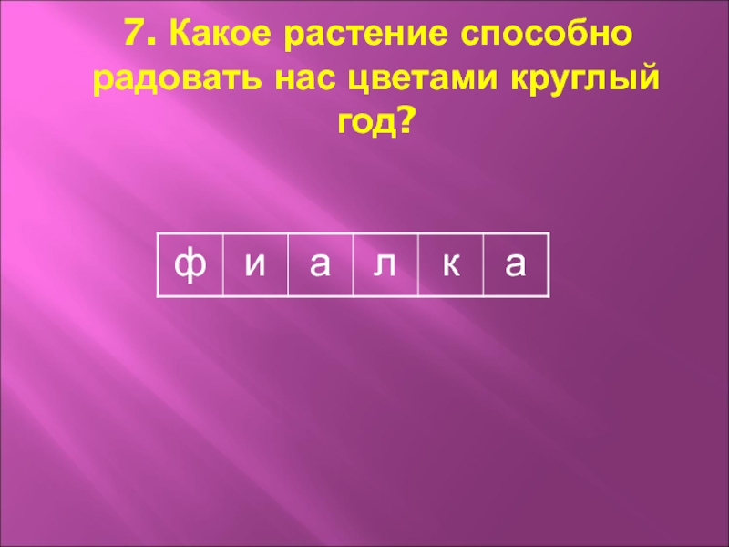 Слайд 497. Какое растение способно радовать нас цветами круглый год?