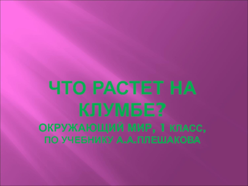 Слайд 1ЧТО РАСТЕТ НА КЛУМБЕ? ОКРУЖАЮЩИЙ МИР, 1 КЛАСС, ПО УЧЕБНИКУ А.А.ПЛЕШАКОВА