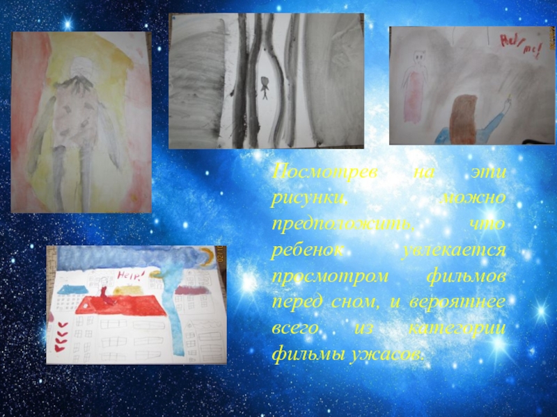 Слайд 22Посмотрев на эти рисунки, можно предположить, что ребенок увлекается просмотром фильмов
