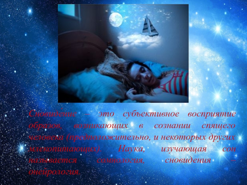 Слайд 14Сновиде́ние – это субъективное восприятие образов, возникающих в сознании спящего человека