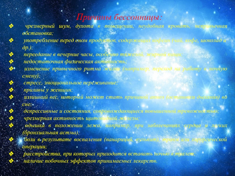 Слайд 10Причины бессонницы: