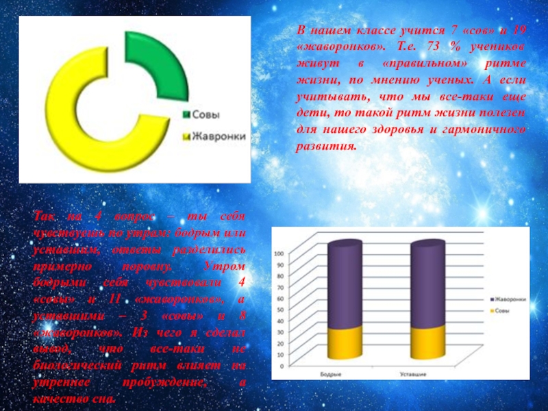 Слайд 18В нашем классе учится 7 «сов» и 19 «жаворонков». Т.е. 73