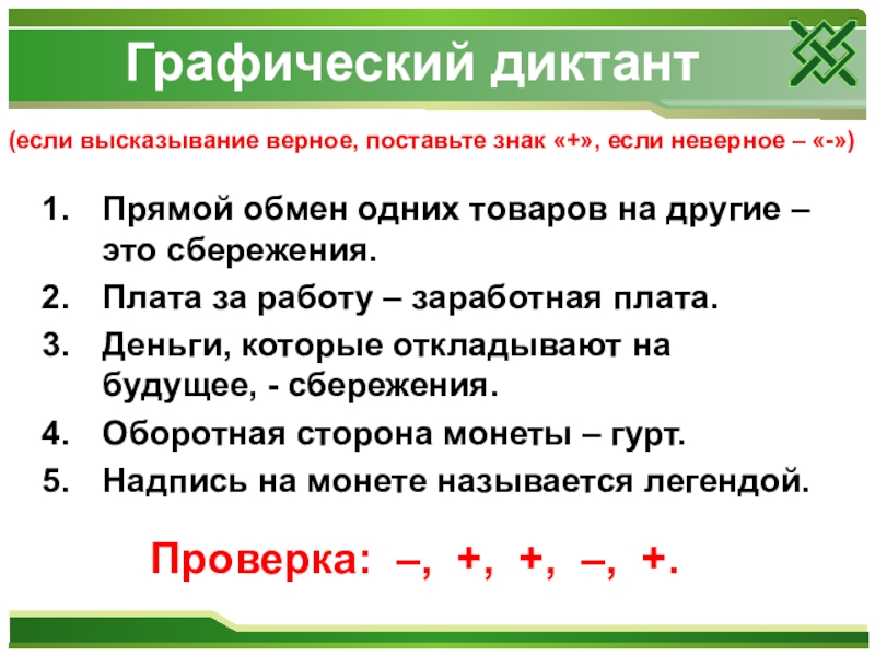 (если высказывание верное, поставьте знак «+», если неверное – «-»)