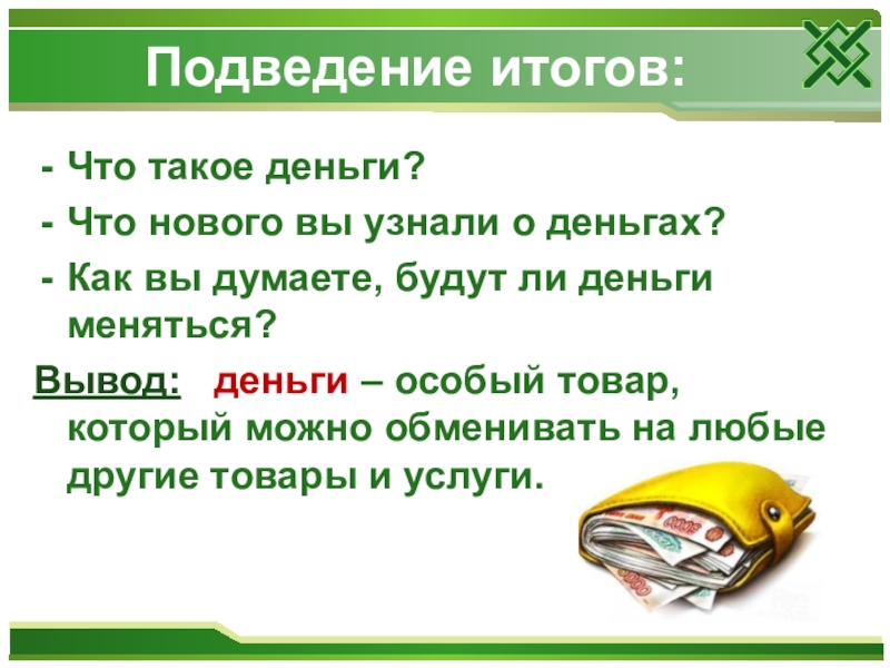 Деньги – особый товар, который можно обменять на любые товары и услуги.