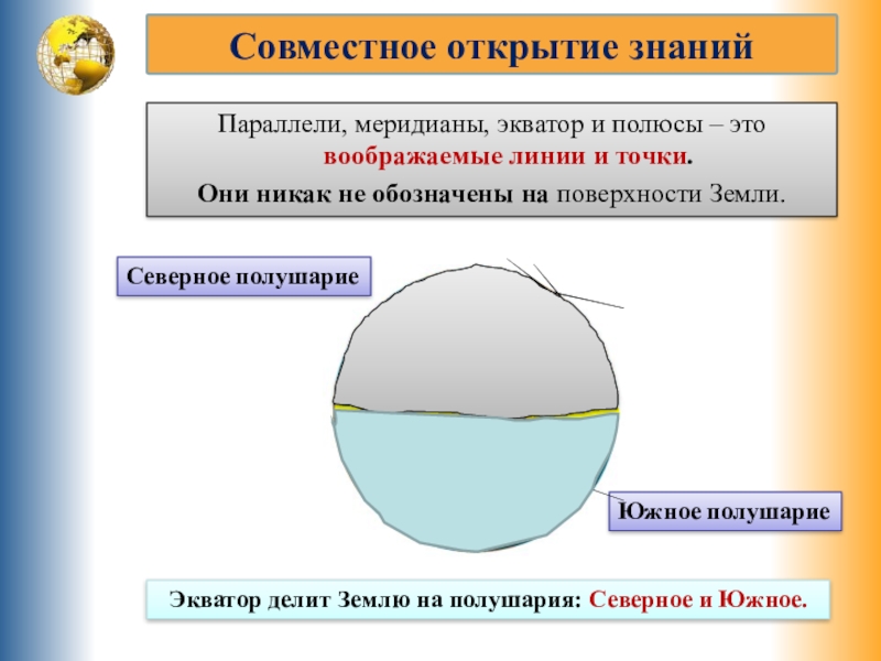 Экватор делит Землю на полушария: Северное и Южное.