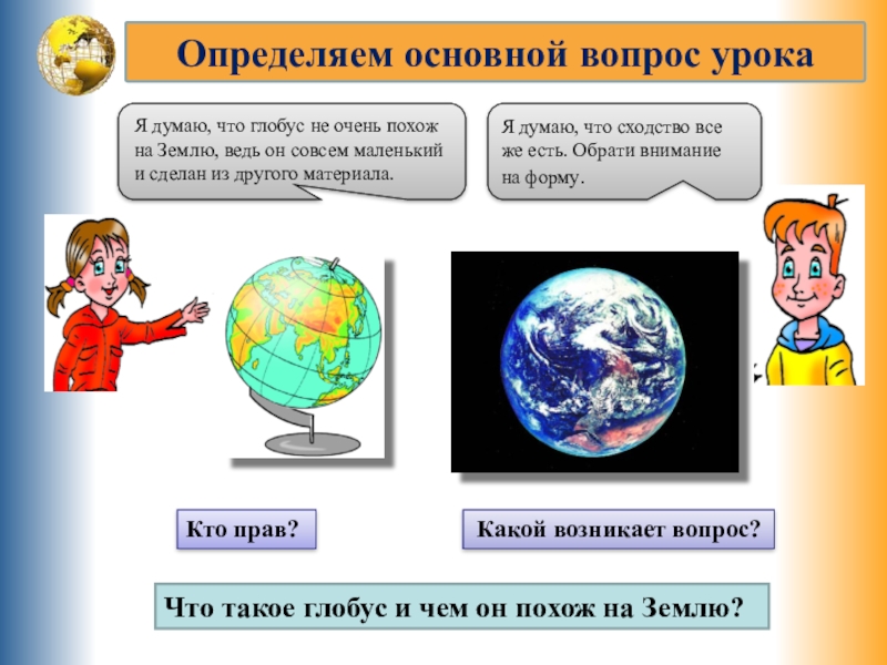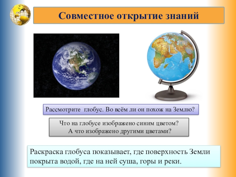 Я думаю, что глобус не очень похож на Землю, ведь он совсем маленький и сделан из другого материала.