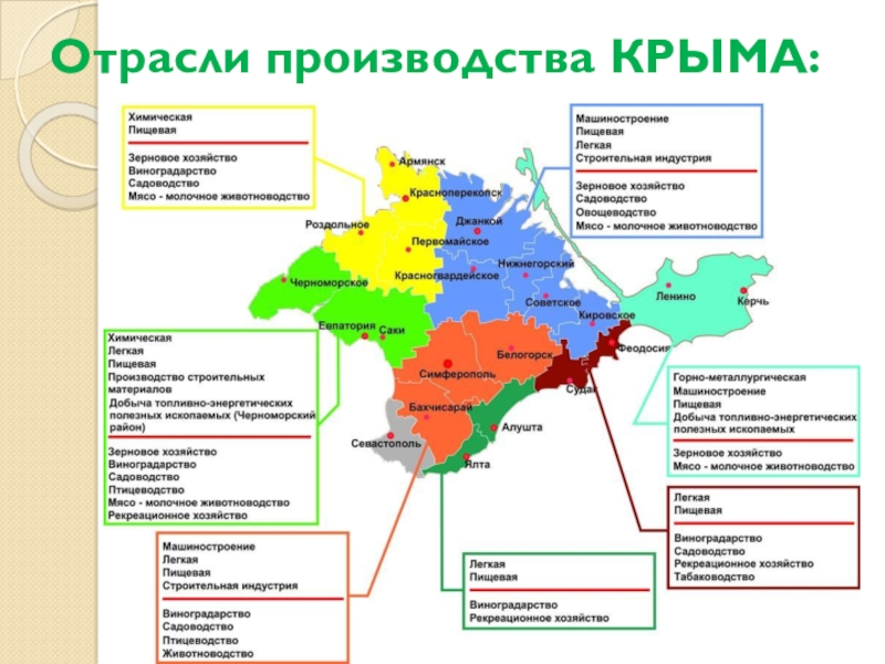 Слайд 9Отрасли производства КРЫМА: