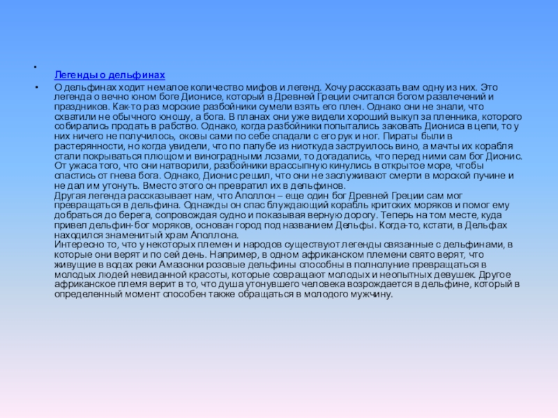 О дельфинах ходит немалое количество мифов и легенд. Хочу